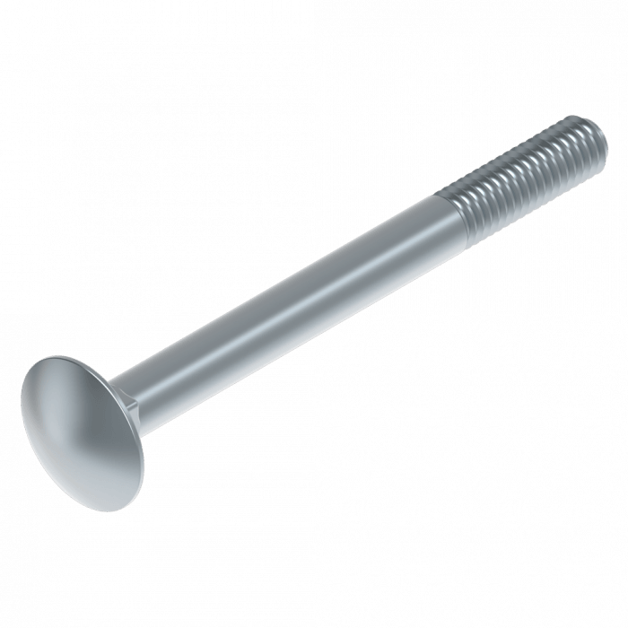 Robuuste, gegalvaniseerde schroef met ronde kop volgens DIN 603 – ideaal voor veilige verbindingen in poorten en metaalconstructies.